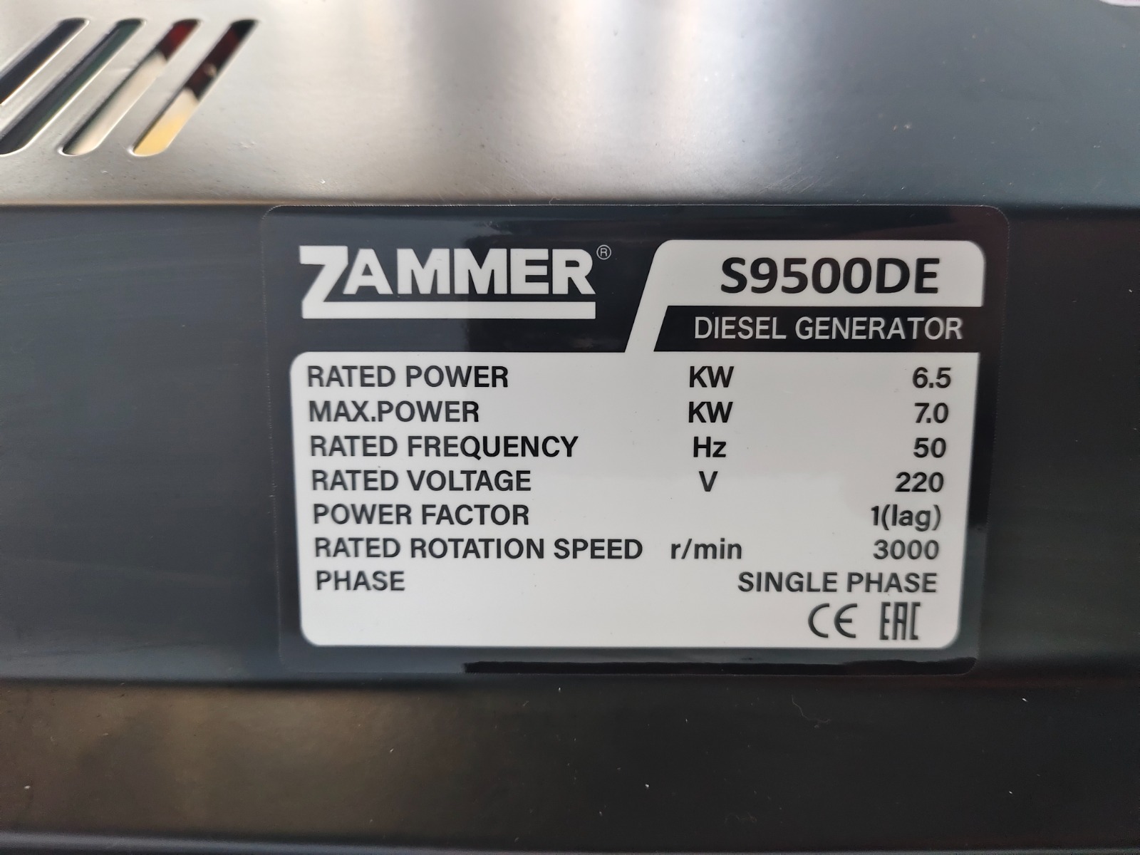 Основные характеристики ZAMMER S9500DE - 6,5кВт